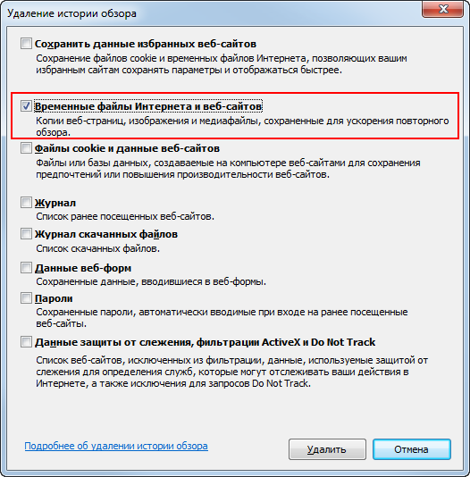 3. Увімкніть опцію Тимчасові файли Інтернету. Всі інші опції слід відключити.