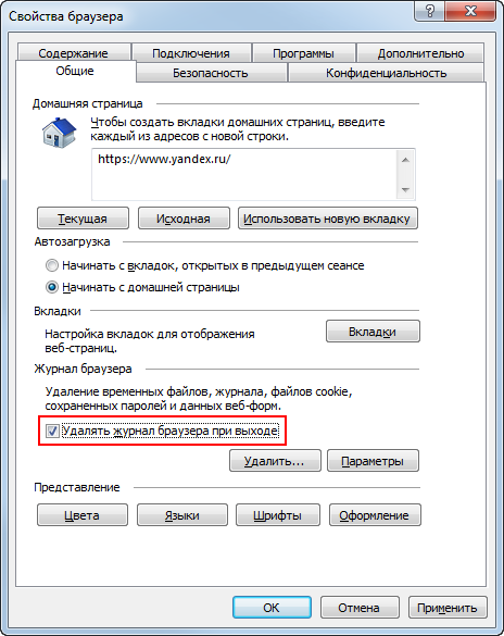 2. У блоці Журнал браузера увімкніть опцію Видаляти журнал браузера при виході.
