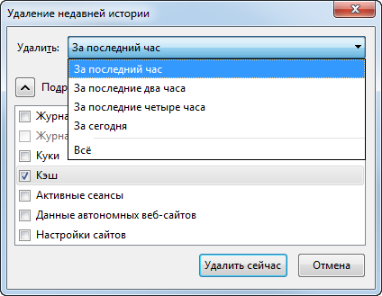 2. У вікні Видалення недавньої історії в полі Видалити виберіть зі списку період, яким браузер має обмежитися при видаленні даних.