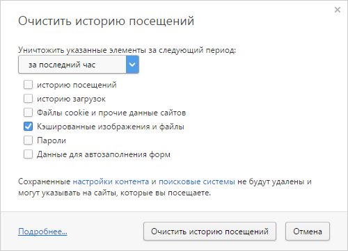 2. У вікні Очистити історію увімкніть тільки опцію Зображення та інші файли, збережені в кеші і виберіть період, яким браузер має обмежитися при видаленні даних.