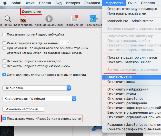 3. У меню браузера виберіть пункт Розробка → Очистити кеші.