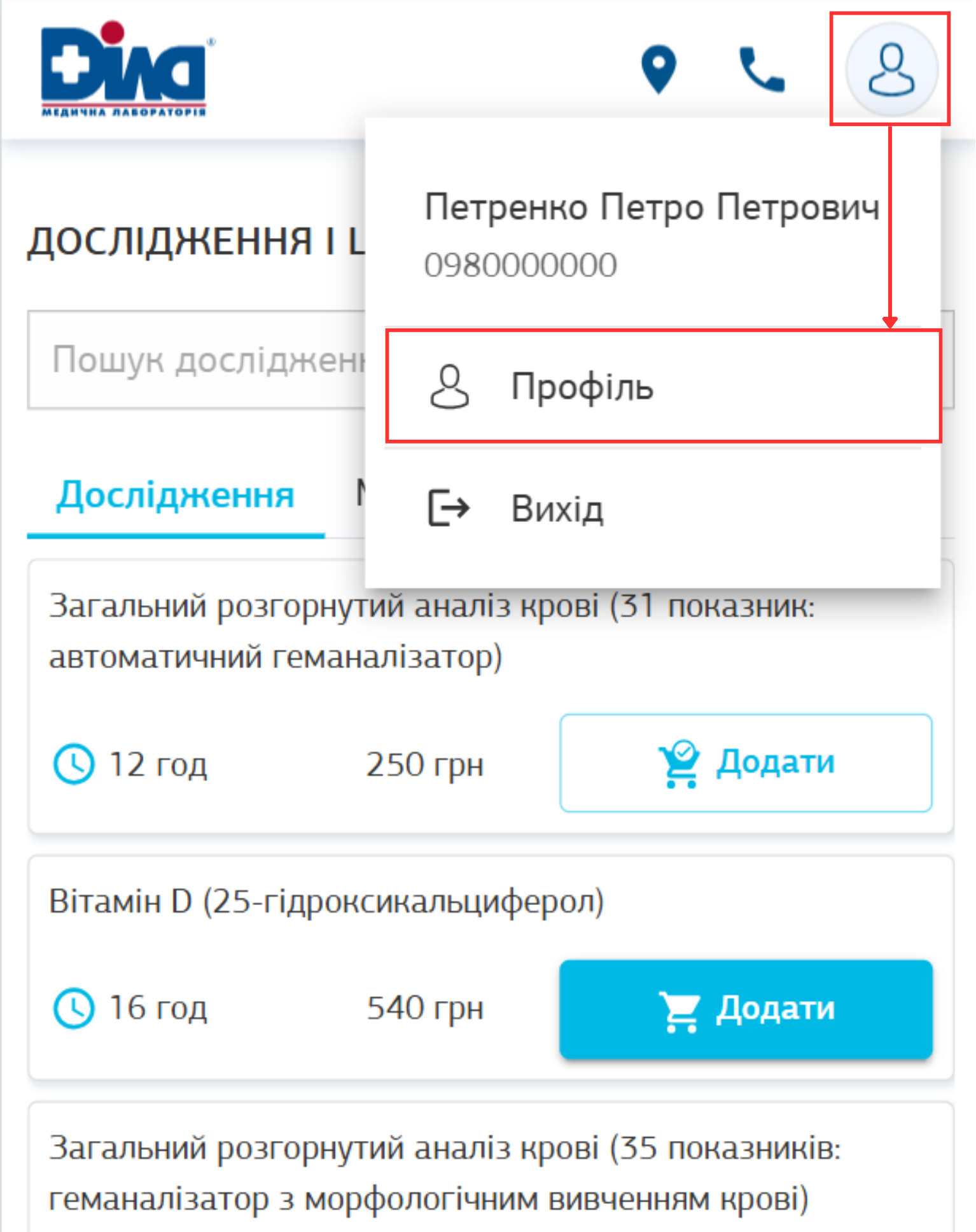 Після зміни номера телефону всі повідомлення (про замовлення, результати тощо) надсилатимуться на новий номер. Крім того, новий номер потрібно буде використовувати для входу в особистий кабінет.