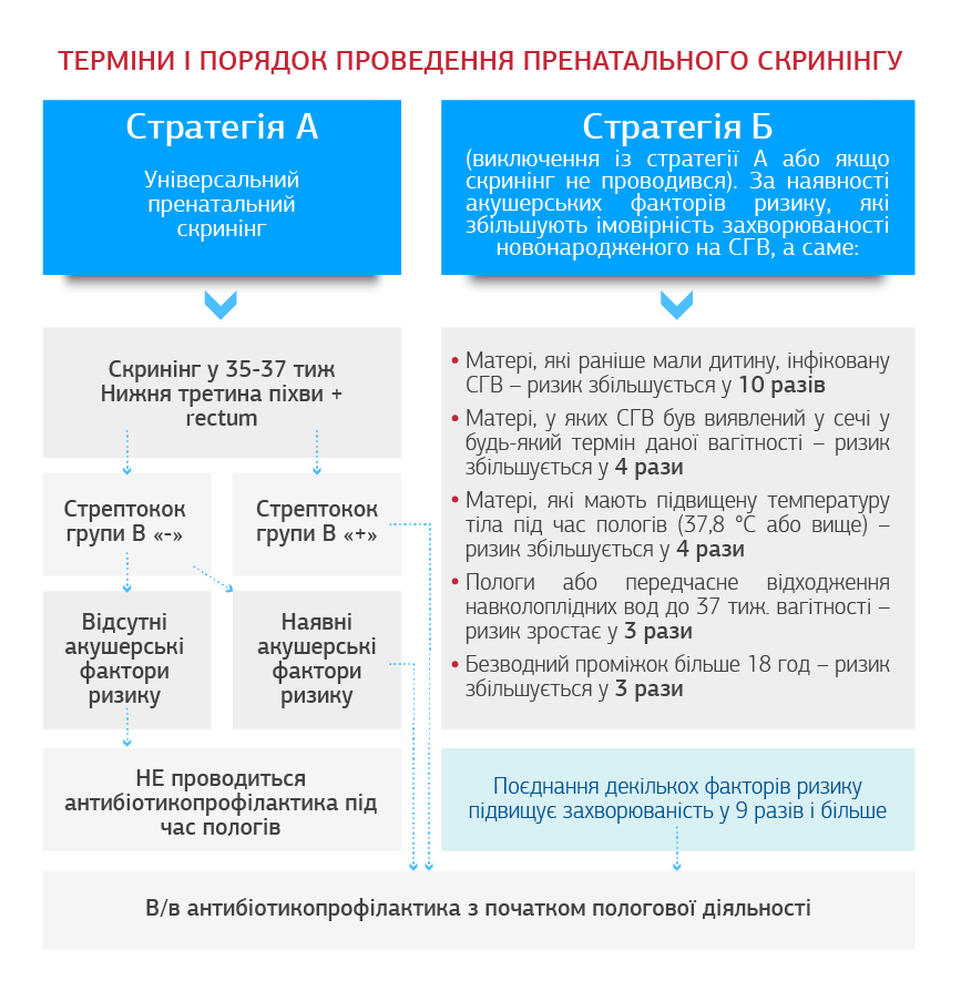 Жінки, яким необхідна внутрішньопологова антибактеріальна профілактика для запобігання ранньому захворюванню, спричиненого СГВ, визначаються відповідно до наведених рекомендацій: