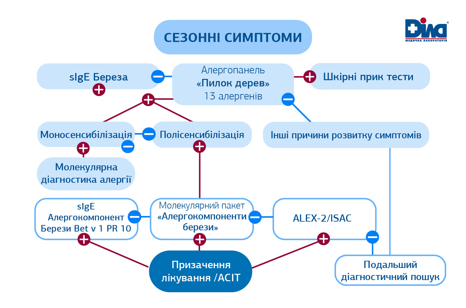 Для пацієнтів із сезонними симптомами лабораторні тести мають безумовні переваги – можливість обстеження пацієнтів під час загострення, на тлі приймання симптоматичних ліків, використання можливостей молекулярної алергодіагностики.