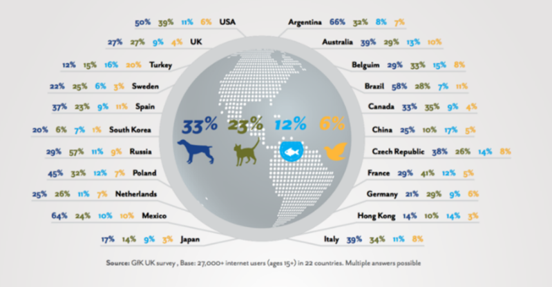 Мал. 1. Розповсюдженість тварин в якості домашніх улюбленців в різних країнах світу