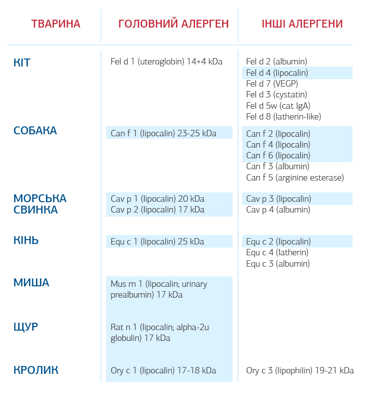 Близько 50% алергенів тварин відносяться до сімейства білків ліпокалінів [6].