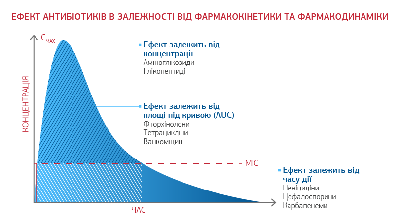 Так, аміноглікозиди і глікопептиди демонструють максимальний ефект і мінімальну токсичність за умови максимальної концентрації, яка забезпечує тривалий постефект.