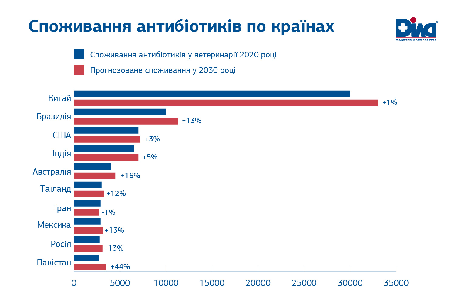 Результати свідчать, що найбільше антибактеріальних препаратів для вирощування тварин використовує Китай, а в Пакистані спостерігається найвища тенденція до зростання їх застосування у тваринництві та птахівництві.