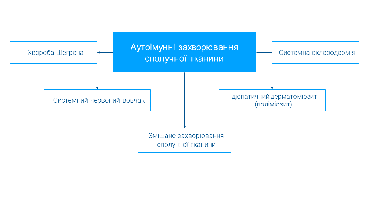 Аутоімуні захворювання сполучної тканини (АІЗСТ) – це велика група захворювань з важким перебігом невідомої етіології, які характеризуються генетично зумовленим системним імунозапальним ураженням сполучної тканини і її похідних, що проявляється множинним ураженням органів і тканин та має поліциклічний прогресуючий перебіг. Вони відносяться до гетерогенної групи захворювань і синдромів, що характеризуються однією ознакою — порушенням таких структур, як колаген і еластин.