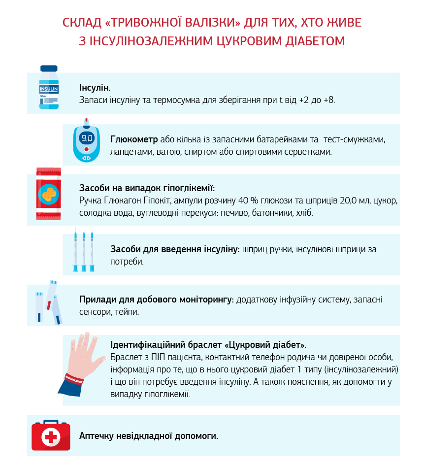 Склад «тривожної валізки» для тих, хто живе з інсулінозалежним цукровим діабетом: