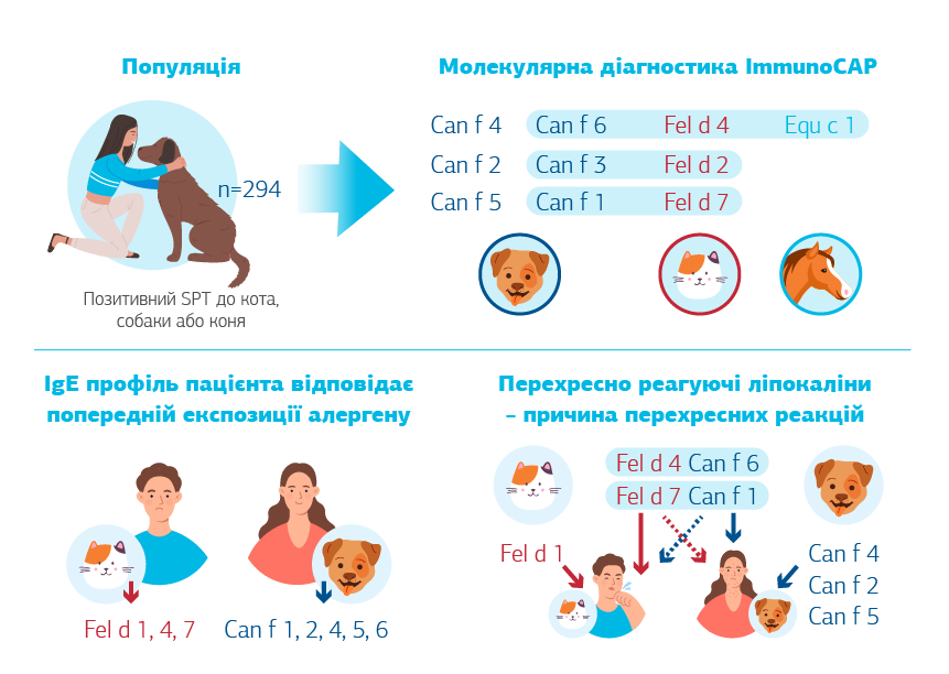 3. Молекулярна діагностика алергії – для підтвердження первинної сенсибілізації до алергенів собаки, прогнозування перехресних реакцій та призначення специфічної імунотерапії: