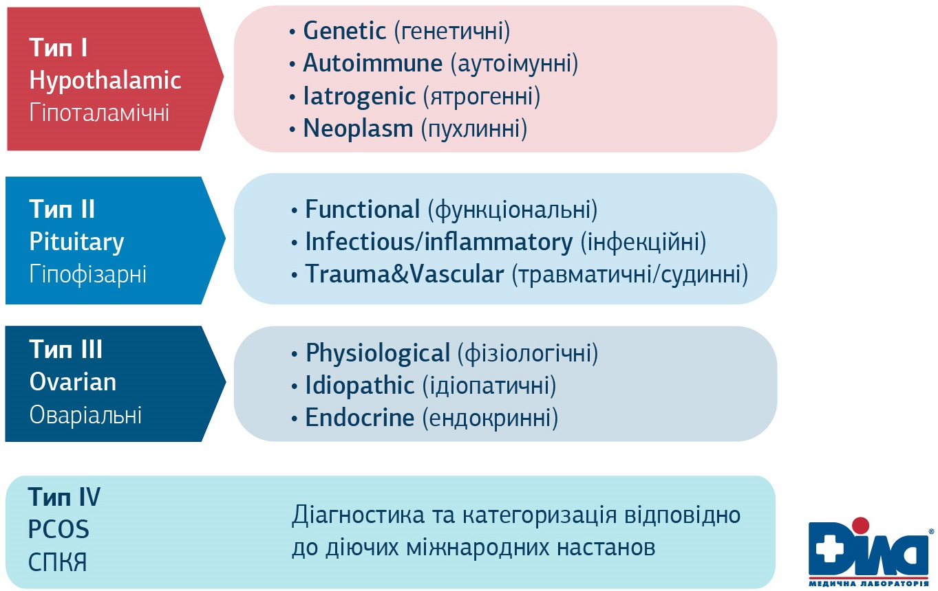 І кожна з таких причин може мати місце на рівні: гіпоталамуса, гіпофіза або яєчників.