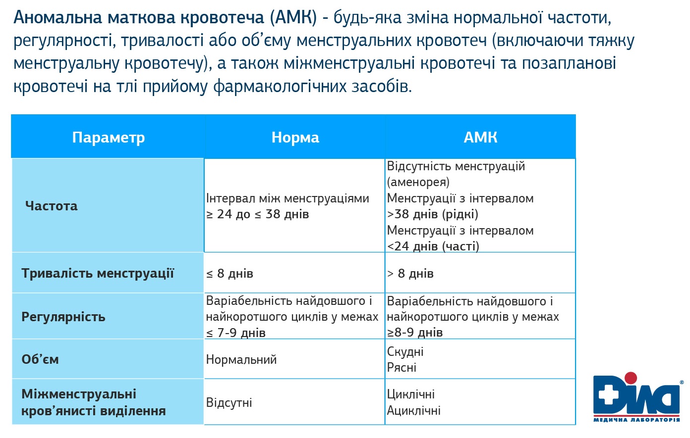 Показанням до обстеження є відхилення характеристик менструального циклу від нормальних, тобто аномальні маткові кровотечі (див. таблицю), а також відсутність вагітності впродовж 12 місяців регулярного статевого життя.