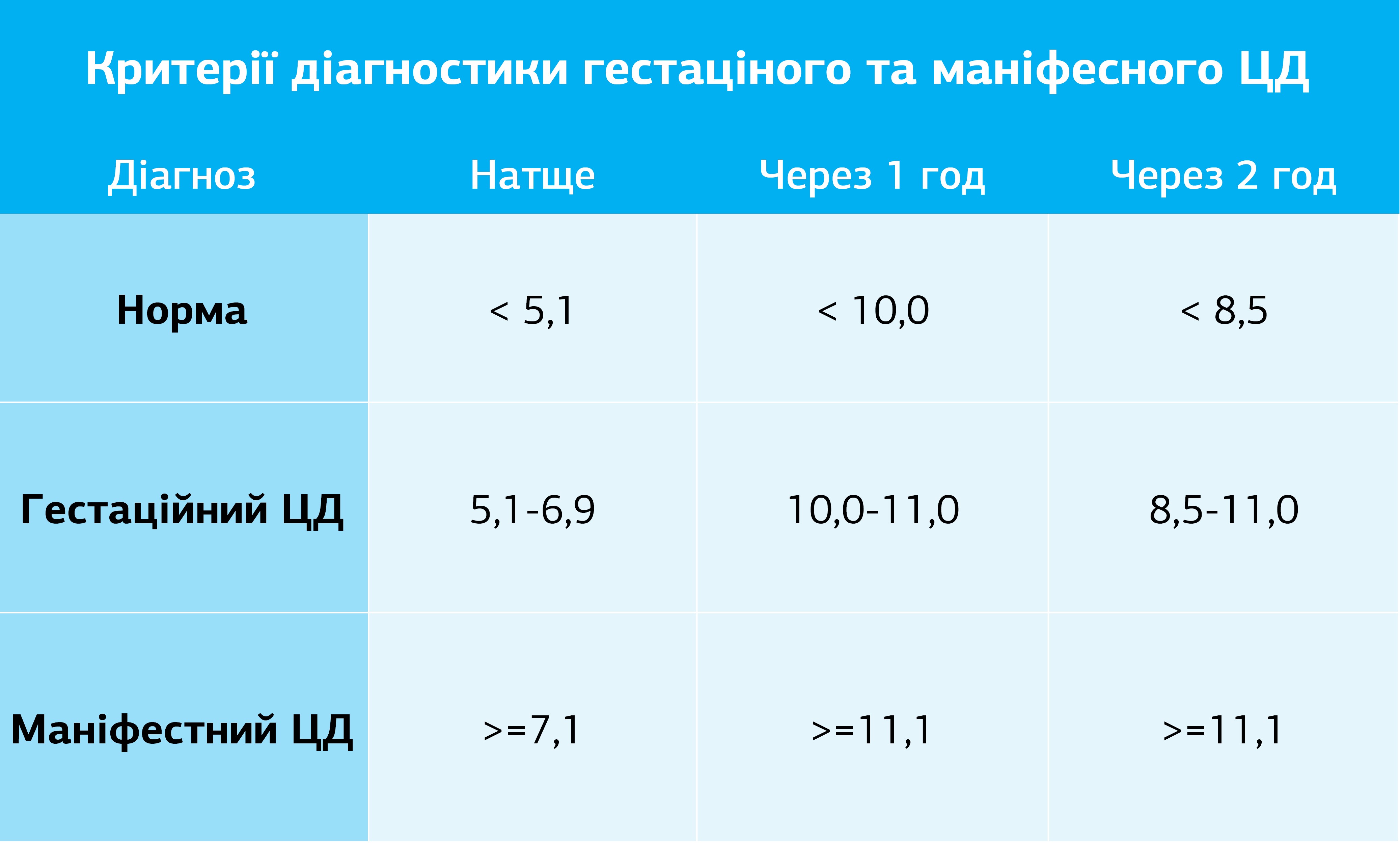 Таблиця 1. Критерії діагностики гестаціного та маніфесного ЦД: