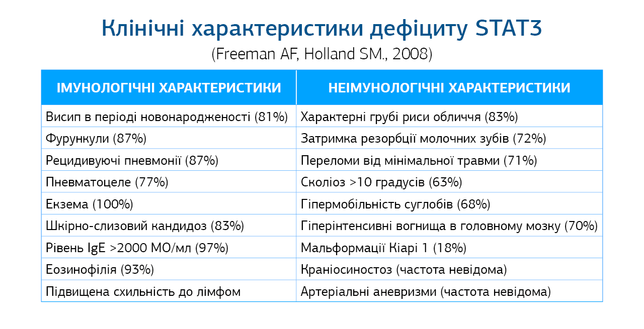 Оскільки не всі клінічні прояви присутні з народження, «діагноз Гіпер-IgE синдрому схожий на пазл, який вимагає симптомів, що формуються роками» (Grimbacher B, et al. Immunological Reviews, 2005).