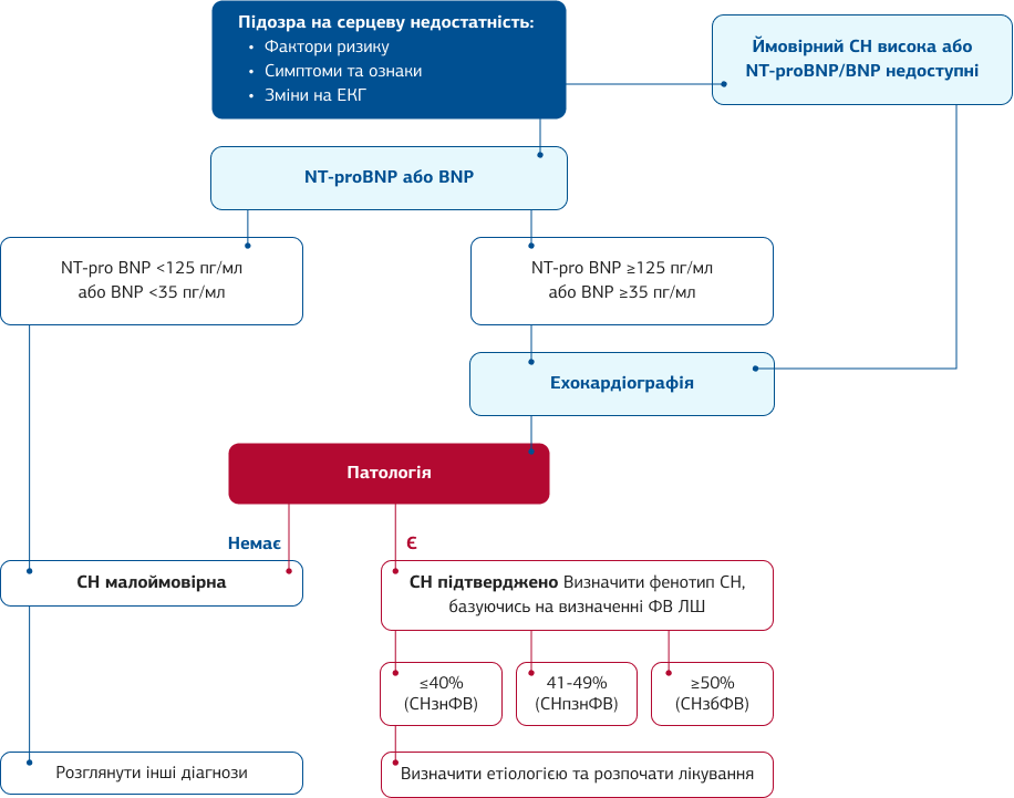 Тобто для стадії А характерні нормальні значення N-кінцевого натрійуретичного пептиду про-В-типу (NT-proBNP) <125 пг/мл в плазмі крові, а для стадії В з високою імовірністю даний показник перевищує нормативні рівні. Тому його визначення допомогає лікарю швидко та ефективно визначити стадію СН та розпочати лікування згідно діючих настанов.