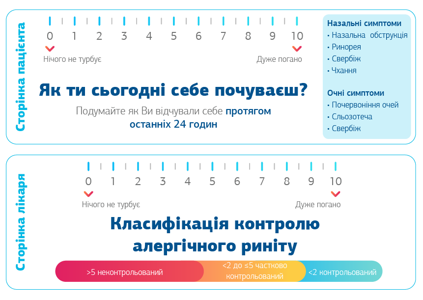 Оцінка контролю має включати базові показники які базуються на шкалі активності симптомів (малюнок 2) від 0 мм – відсутність ознаки до 100 мм – тяжкі симптоми: