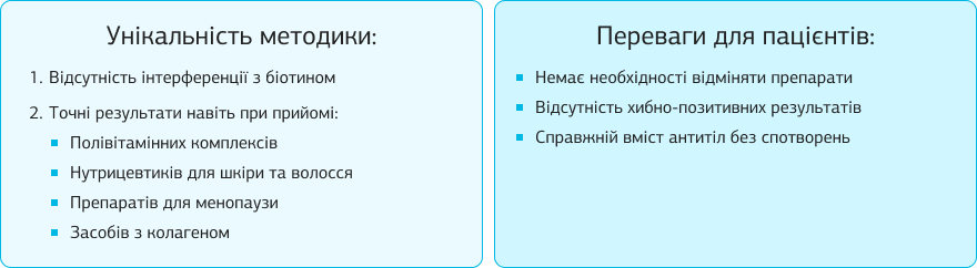 Біотин-незалежна технологія повністю виключає можливість такої інтерференції, забезпечуючи точні результати незалежно від дієтичних звичок пацієнта. Це означає, що пацієнтам не потрібно припиняти прийом важливих для них препаратів перед здачею аналізів, а лікарі можуть бути впевнені в достовірності отриманих результатів.