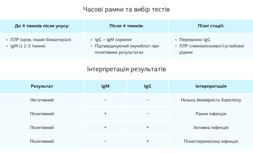 Успішна діагностика бореліозу вимагає чіткого розуміння часових рамок розвитку імунної відповіді та вибору оптимальних методів дослідження відповідно до клінічної ситуації. Кожна стадія захворювання має свої діагностичні особливості, які необхідно враховувати для максимальної точності.