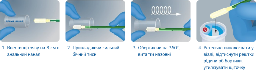 - Стандартизована методика взяття БМ для анального ПАП-тесту: оригінальна щіточка Rovers Anexs та віала SurePAth BD для рідинної цитології.