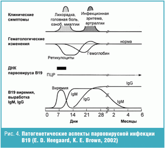 Найбільш важкі наслідки парвовірусної інфекції (первинної) - в період вагітності (трансплацентарне інфікування, неімунна водянка та втрата плоду, анемія, тромбоцитопенія, менінгоенцефаліт у новонародженого).