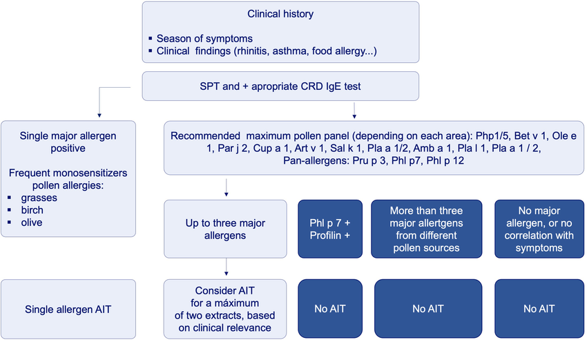 Молекулярна діагностика як стандарт. Переважна більшість пацієнтів з пилковою алергією є полісенсибілізованими з високим ризиком перехресних реакцій до алергенів з інших непилкових джерел. Тому всі сучасні діагностичні алгоритми рекомендують використання методів молекулярної діагностики.