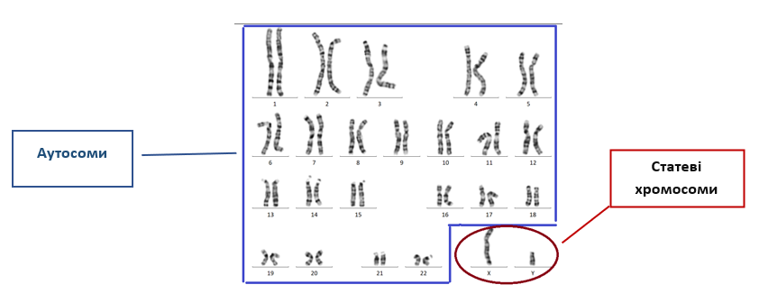 Кожна людина має 23 пари хромосом: 22 пари аутосом та дві статеві хромосоми.