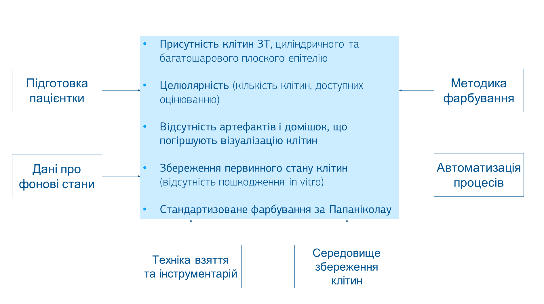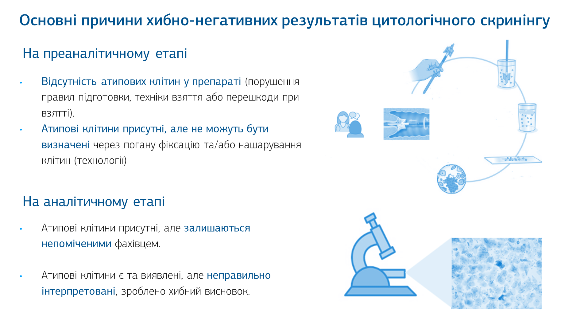 Таким чином, для ефективності цитологічної складової цервікального скринінгу (Пап-тест) важливими є як аналітичний, так і преаналітичний етапи.
