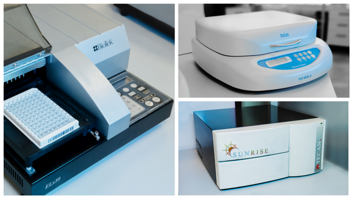 Фотометричний рідер SUNRISE (Tecan, Austria), автоматичний вошер Elx50 (BioTeck, USA), інкубатори-шейкери Комплект обладнання для проведення твердофазного імуноферментного аналізу (ІФА) використовується для досліджень гормонального статусу, аутоімунних патологій, онкомаркерів і різноманітних інфекцій. |