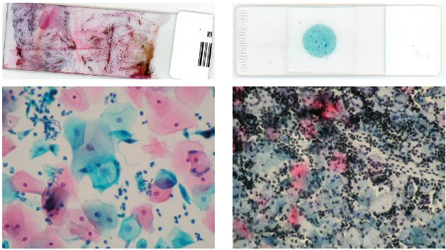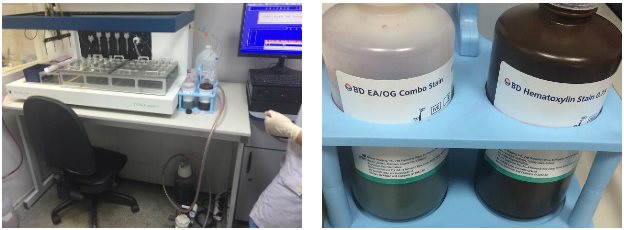 і приготування, в т.ч. і автоматичне забарвлення препарату (праворуч) на BD PrepStain TM Slide Processor.