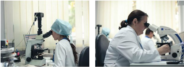 Рис.12. Лікарі-цитологи переглядають препарати під мікроскопом і видають висновки цитологічного дослідження.