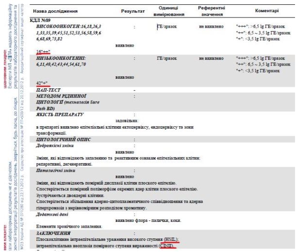 Рис. 13. Представлений результат ко-тесту: Цитологічне дослідження методом рідинної цитології і ПЛР на ВПЛ.