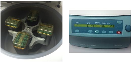 На наступному етапі проводиться центрифугування (для приготування концентрованого клітинного осаду).