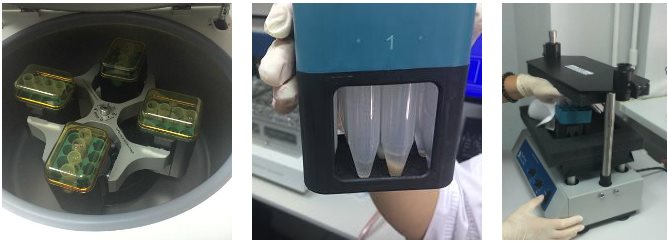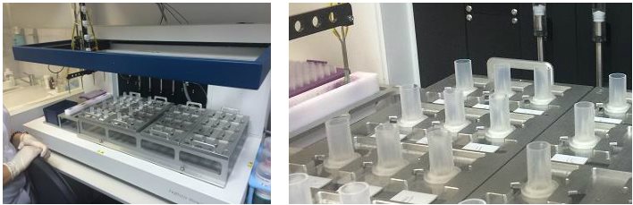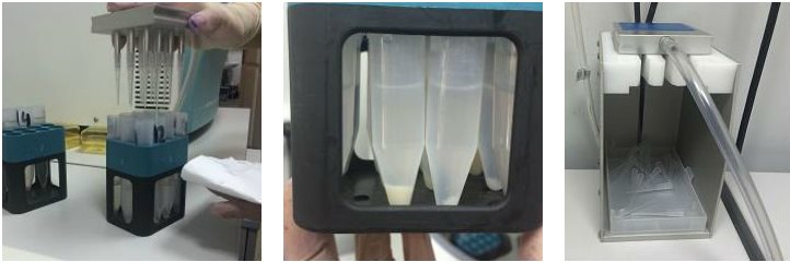 Проводиться рандомізація клітинного складу і перенесення матеріалу в пробірки. Далі переходимо до пристрою PrepMate, який призначений для перенесення клітинного розчину з віал до центрифужної пробірки з щільним реагентом.