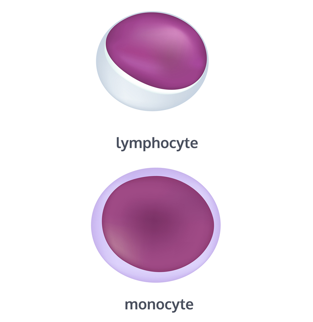 - входять в групу агранулоцитів, які не містять кольорових гранул: лімфоцити і моноцити.