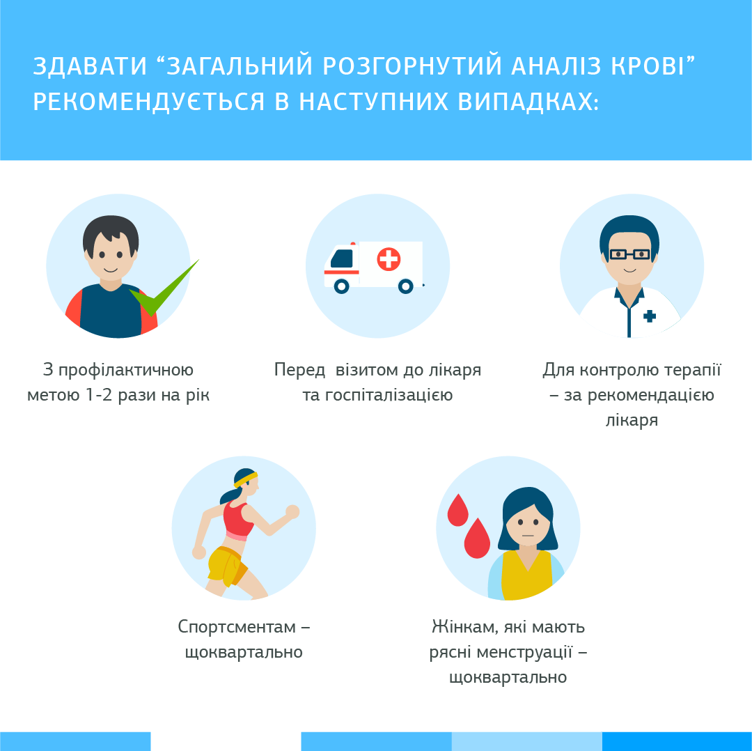 - Для спортсменів і жінок, які мають рясні менструації, рекомендується проходити дослідження «Загальний розгорнутий аналіз крові (автоматичний геманалізатор 33 показника)» частіше - щоквартально.