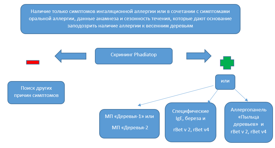 Диагностика аллергии к пыльце весенних деревьев только на уровне экстрактов не позволяет четко определить источник первичной сенсибилизации, что может влиять на эффективность АСИТ; поэтому возникает необходимость детекции аллергокомпонентов на молекулярном уровне.