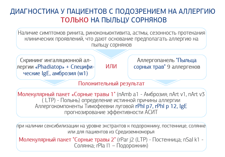 Диагностический алгоритм у пациентов с подозрением на аллергию только на пыльцу сорняков