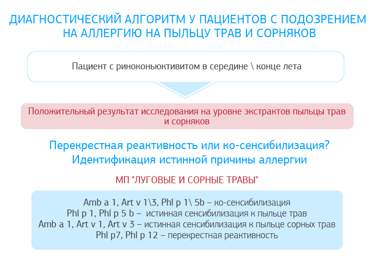 - дифференциации ко-сенсибилизации к аллергенам трав и сорняков от перекрестной реактивности;