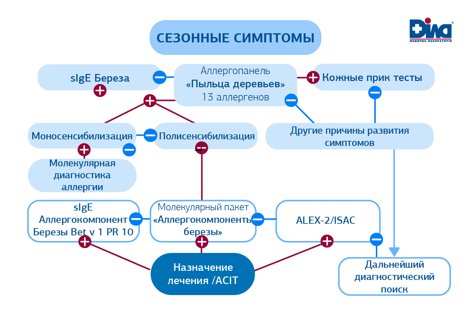Если есть подозрение на аллергию на пыльцу весенних деревьев – можно использовать следующий алгоритм: