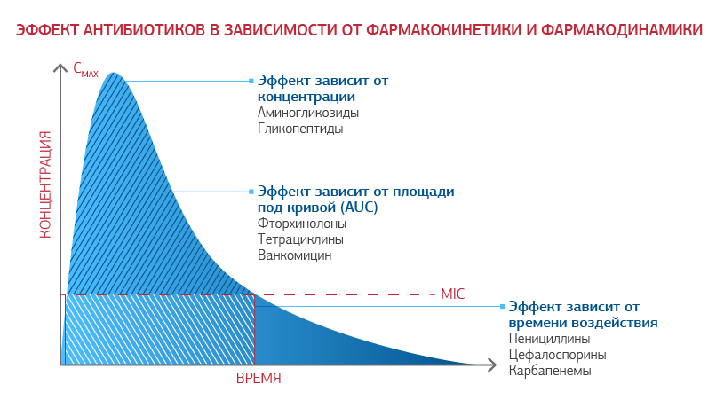 Так, аминогликозиды и гликопептиды демонстрируют максимальный эффект и минимальную токсичность при максимальной концентрации, которая обеспечивает длительный постефект.