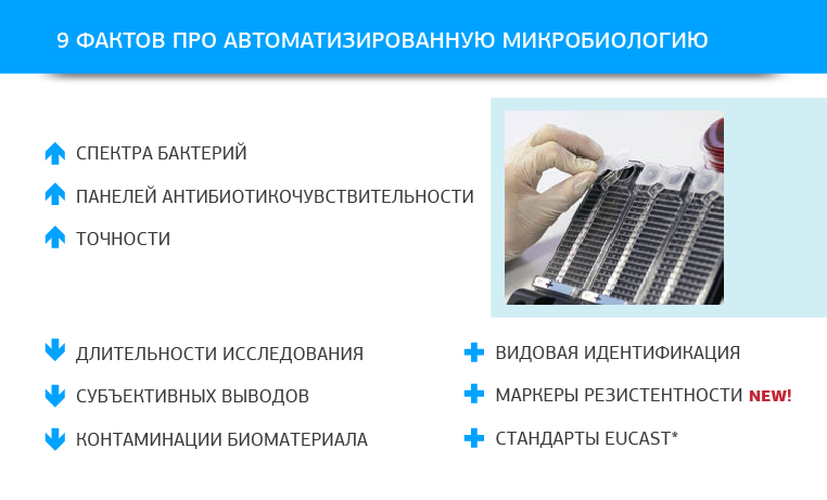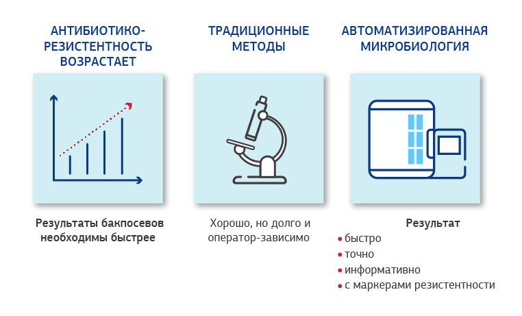 Автоматизированная микробиология делает реализацию этой стратегии возможной: сокращенные сроки получения результата бакпосева, расширенные возможности идентификации и антибиотикочувствительности.