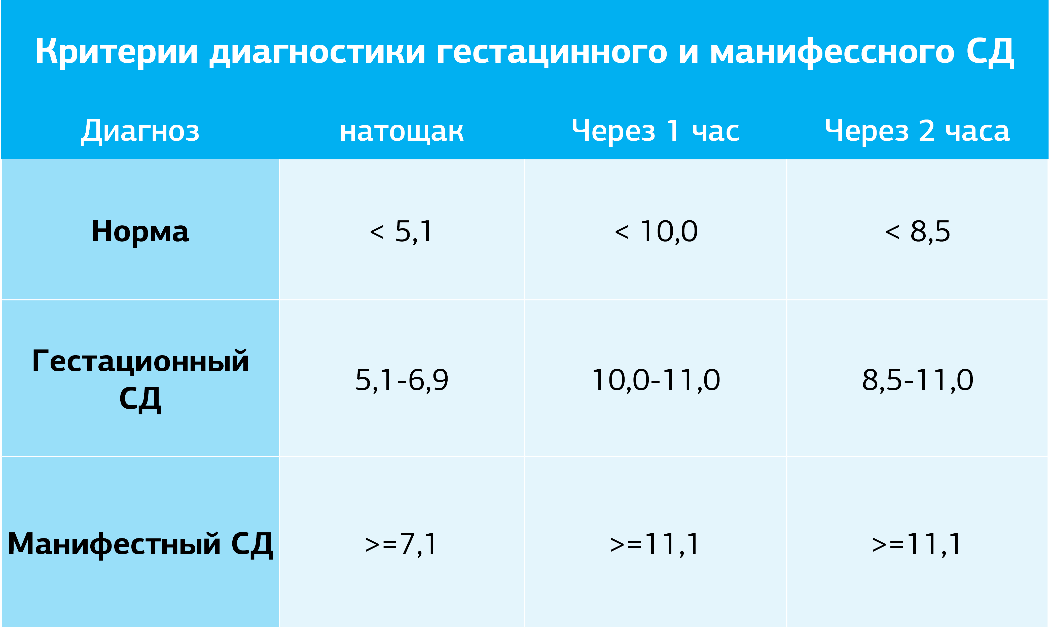 Таблица 1. Критерии диагностики гестацинного и манифессного СД (АDA 2022):