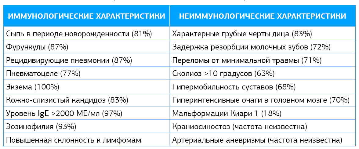 Поскольку не все клинические проявления присутствуют с рождения, «диагноз Гипер-IgE синдрома похож на пазл, требующий симптомов, формируемых годами» (Grimbacher B, et al. Immunological Reviews, 2005).
