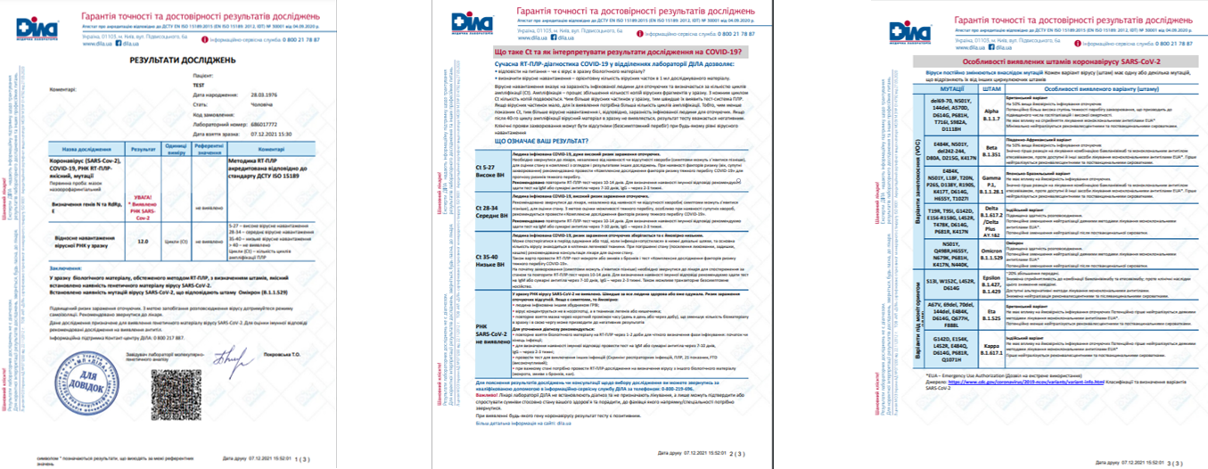 ПЦР тест-системы, используемые в ДІЛА, определяют коронавирус по целевым высококонсервативным и высокоспецифическим генам: E, N, ORF1ab, RdRp, тогда как подавляющее большинство мутаций, присущих штамму «Омикрон» (B.1.1.529) локализованы в гене S. Благодаря этому, удается обнаружить даже мутированный штамм, делая невозможным получение «ложноотрицательного» результата.