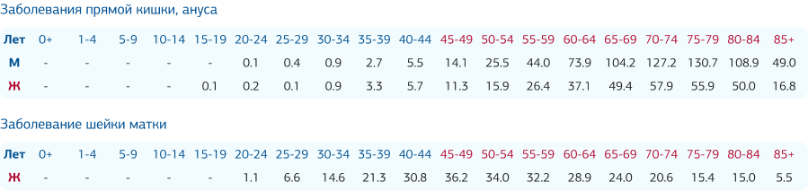 В Украине Канцер-реестр демонстрирует данные, свидетельствующие о существенном росте доли заболевания раком прямой кишки и ануса среди женщин в возрасте от 55 лет, по сравнению с аналогичными показателями заболевания раком шейки матки.