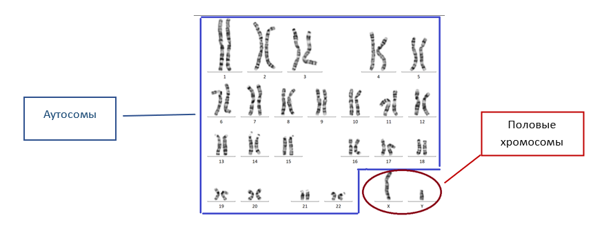 Каждый человек имеет 23 пары хромосом: 22 пары аутосом и 2 половые хромосомы.