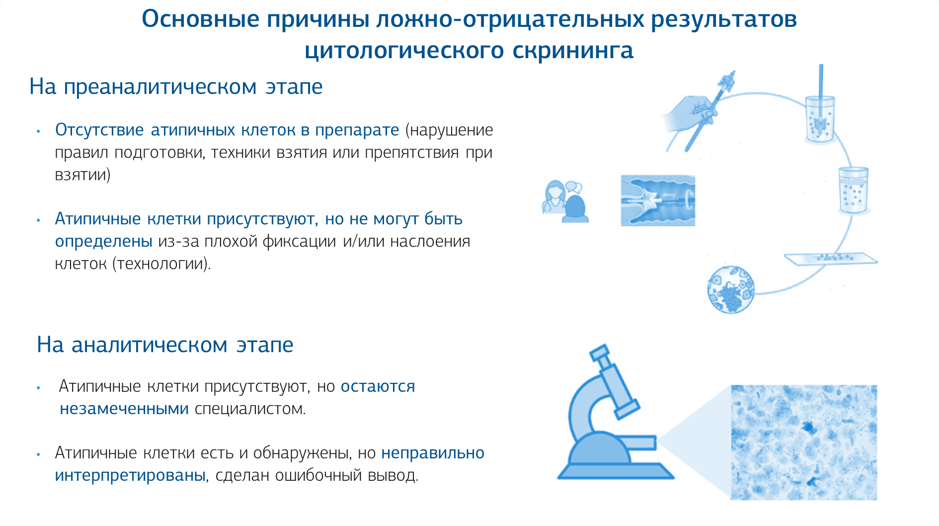 Что может быть причиной неудовлетворительных или ложных результатов цитологического скрининга и как избежать этих ошибок?