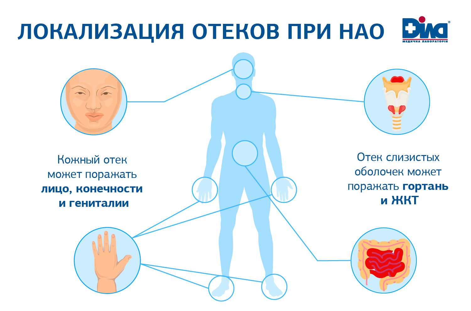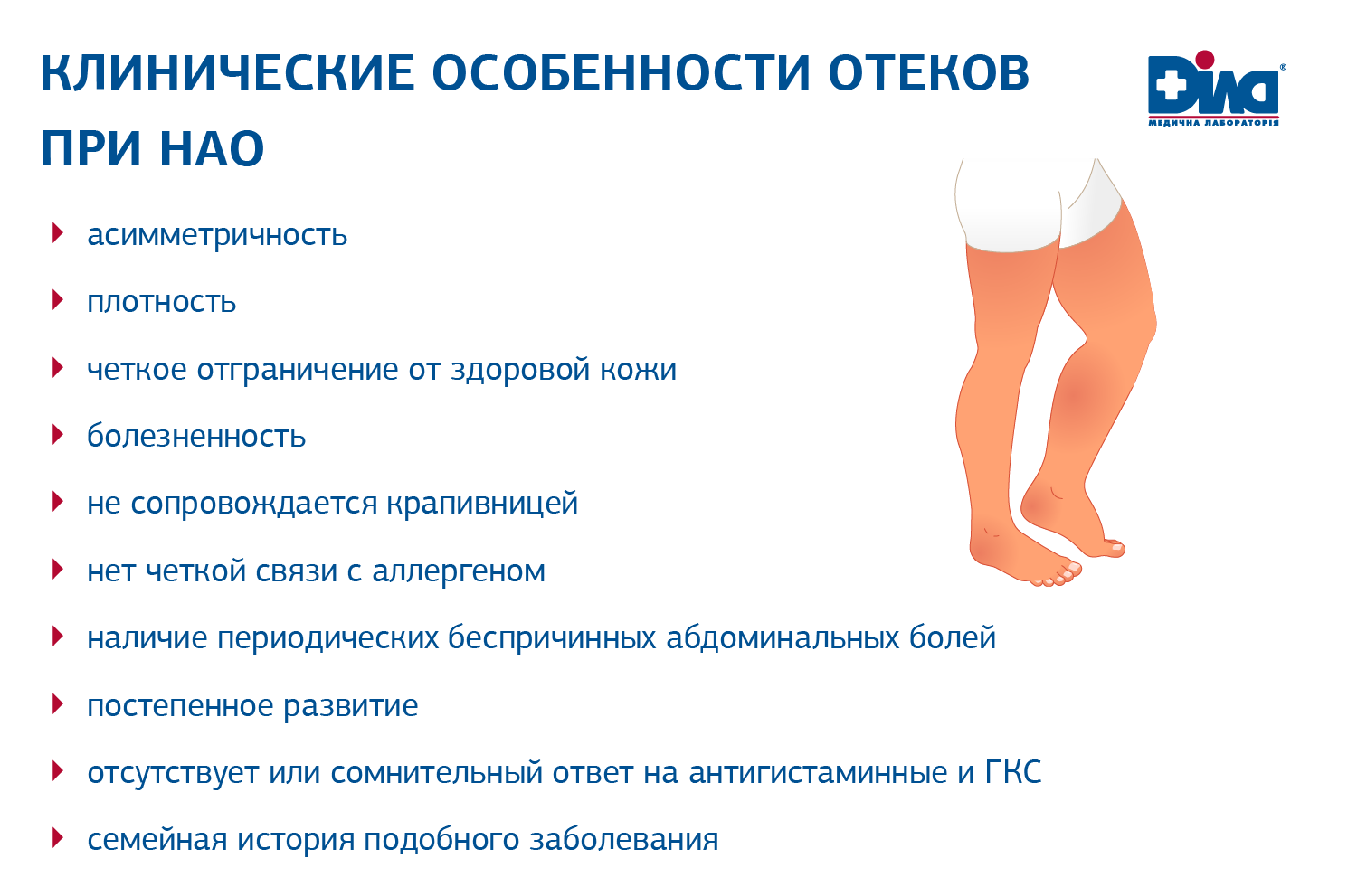 В основе диагностического алгоритма ДІЛА предлагает исследование Комплекс №237 "Диагностика наследственного ангионевротического отека (НАО)".