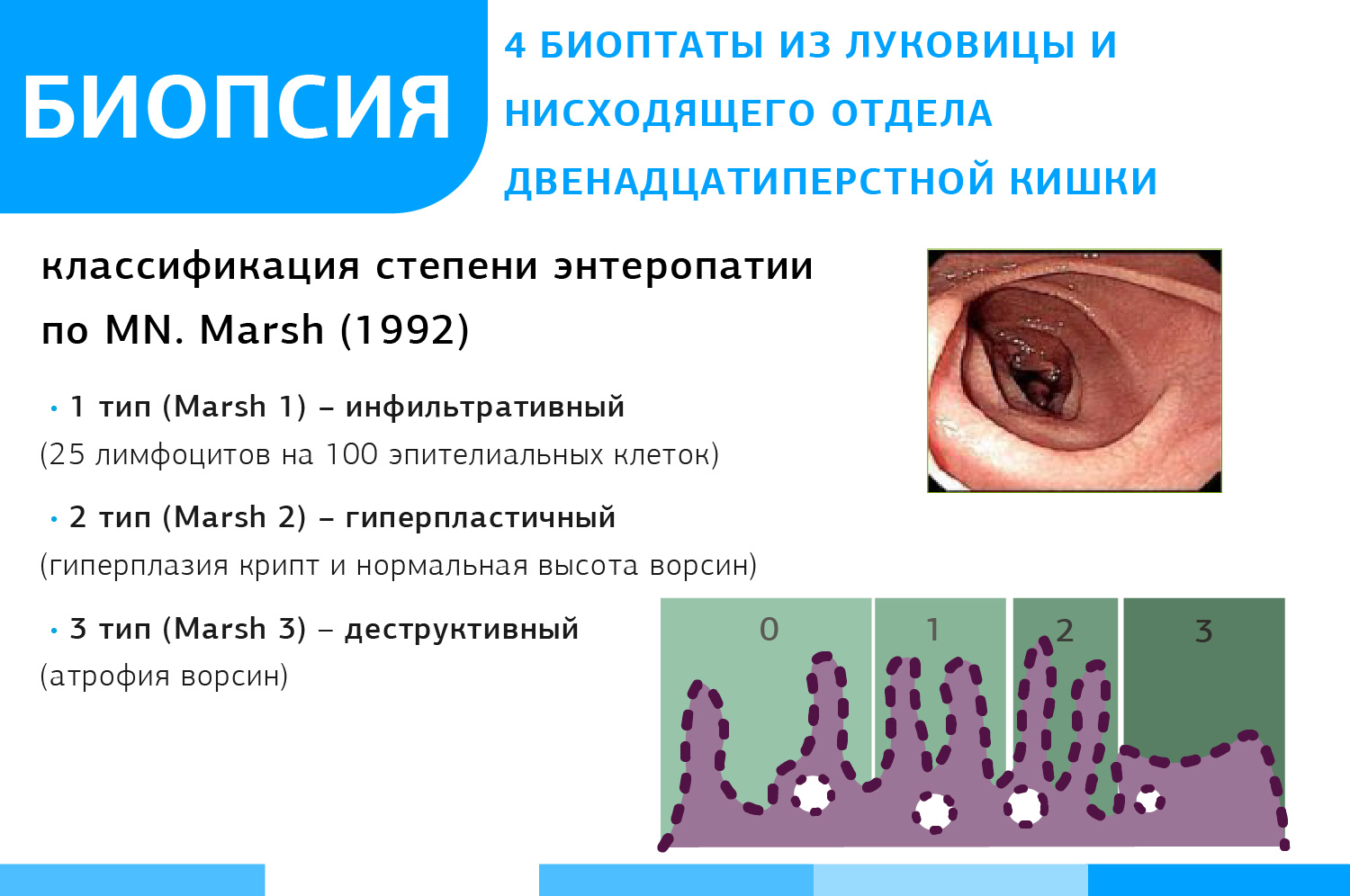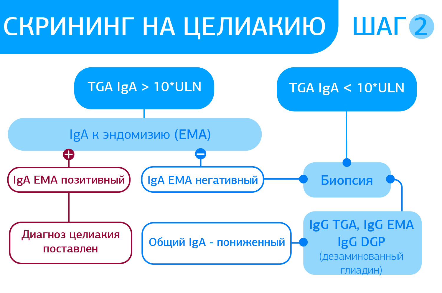 1. Серологическое тестирование положительное, следующий шаг – биопсия из тонкого кишечника.